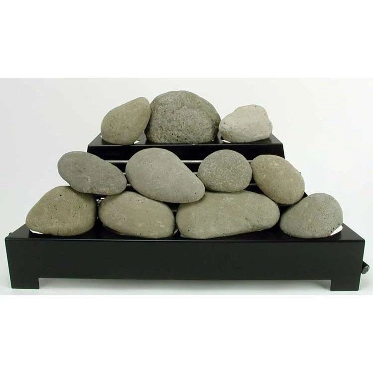This Rasmussen ALTERNA set combines FireStones and stainless steel into a retrofit heating appliance for installation into virtually any wood burning or vent free fireplace. Set Includes: 16 Natural FireStones ANSI Certified Vent Free See-Thru Black Chassis Burner Oxygen Depletion Sensor (ODS) pilot piezo ignitor connector kit and instructions. Lighting Method: Factory Installed Remote Ready Safety Pilot.