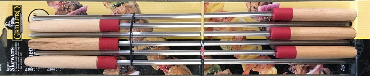 Deluxe 6 Piece Chrome Plated 22″ Shish-Ke-Bab Skewers With Wooden Handles