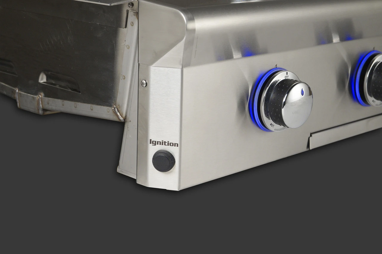 This 36 Inch AOG American Outdoor Grill built-in grill features 304 series stainless construction, 3 main 304 stainless U-burners producing 50000 BTUs, 37 inch x 18 inch (648 square inches) main grilling area. The “L” series features Lights (knobs and interior).