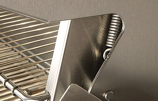 Two-position warming rack stores conveniently up out of the way when not in use. Warming rack and grill racks are made from solid stainless steel rod for long life and easy cleaning. Recessed vertical control panel protects chrome knobs and switches from the elements. Unique air curtain chimney design keeps controls cool to the touch even with lid closed. A convenient thermometer is built into the hood for accurate oven roasting temperatures.