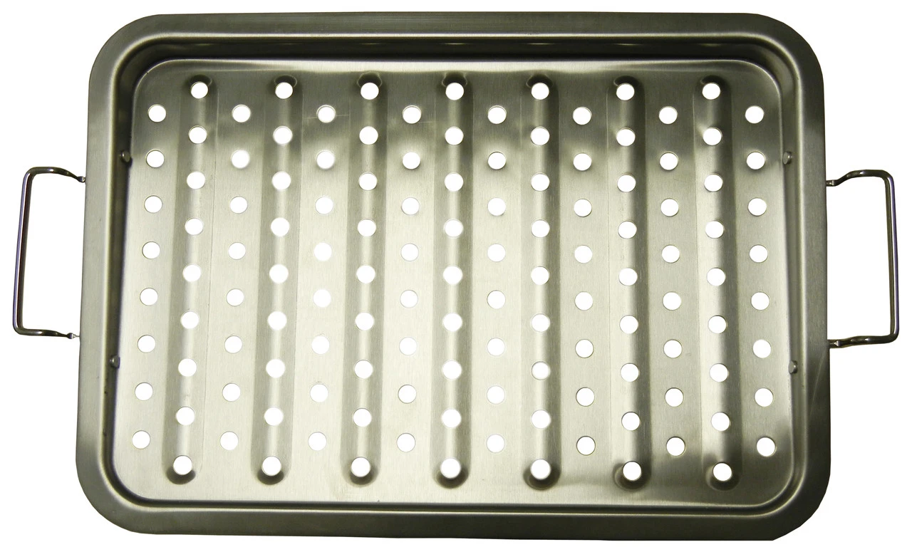 This Stainless Steel Grill Topper 19.5″ x 10.75″ with Handles goes right on top of your grilling surface and is great for fragile meats (like fish) or veggies.